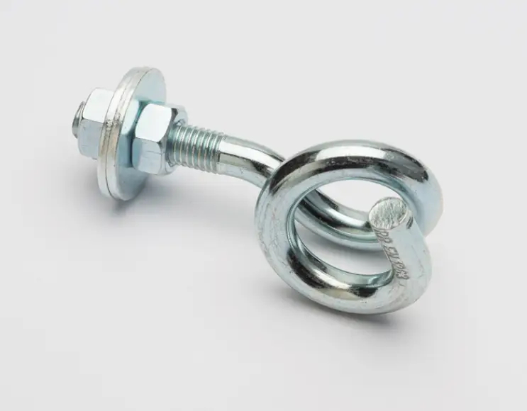 Gancio a ricciolo con doppio dado e rondella filetto 40 mm. Ideale per applicazione con dado e contro dado su fori passanti.