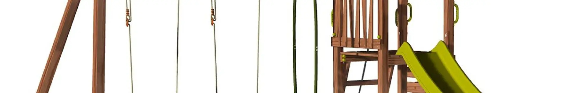 Set composto da: 2 altalene, cavalluccio, torretta con scala di accesso in legno e corda,