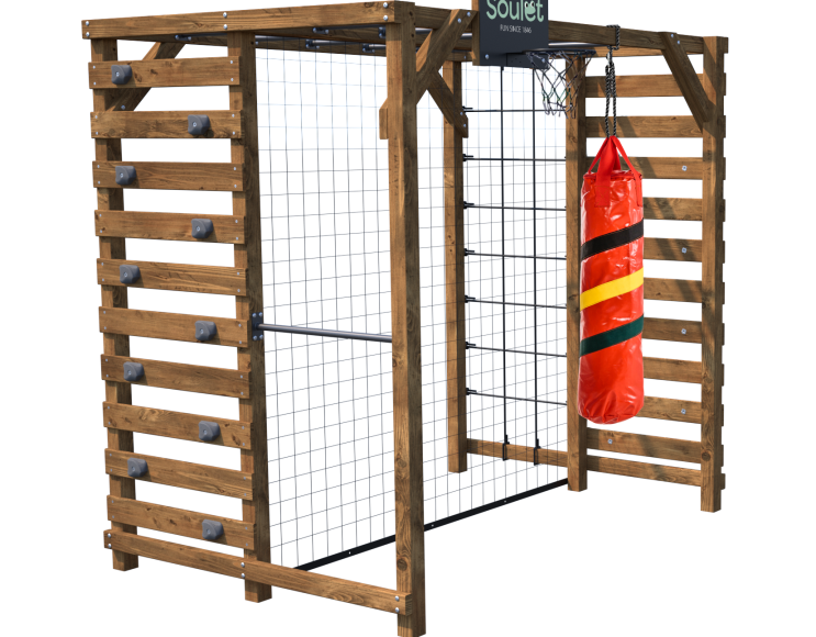 sacco da boxe, porta da calcio e canestro da basket (palloni non forniti)