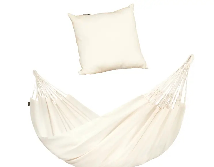 Amaca in tessuto bianco panna, un colore classico, intramontabile che si adatta ad ogni ambiente.