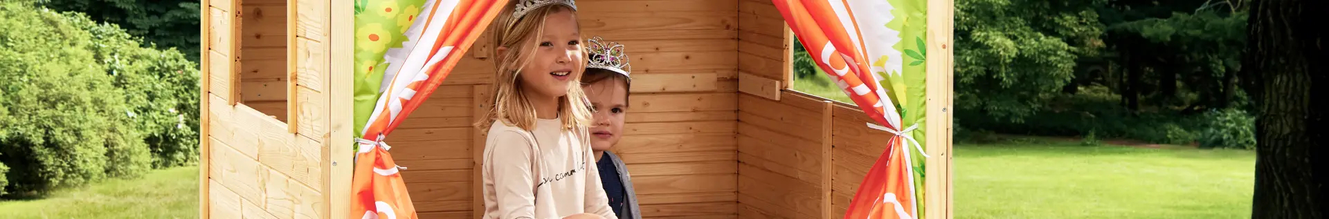 In legno per esterno, da giardino e terrazzo per il gioco dei bambini. Con due aperture per finestre.
